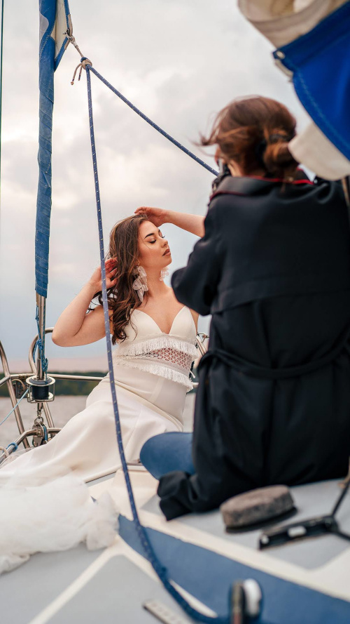 Nie ma bardziej romantycznej scenerii do sesji niż białe żagle na tle szmaragdowej wody.